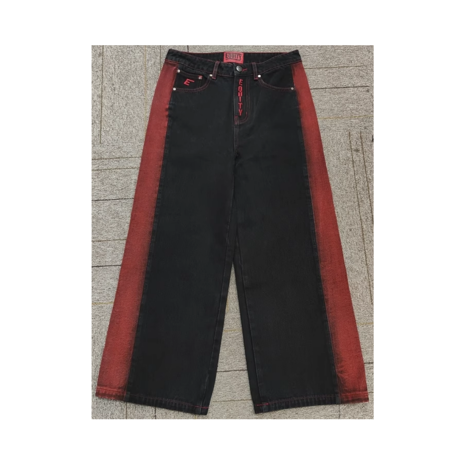 Loose fit jeans with a red denim stripe stitched along the sides of the legs. Crafted with love and quality these jeans are the fine line between luxury clothing and streetwear style.
